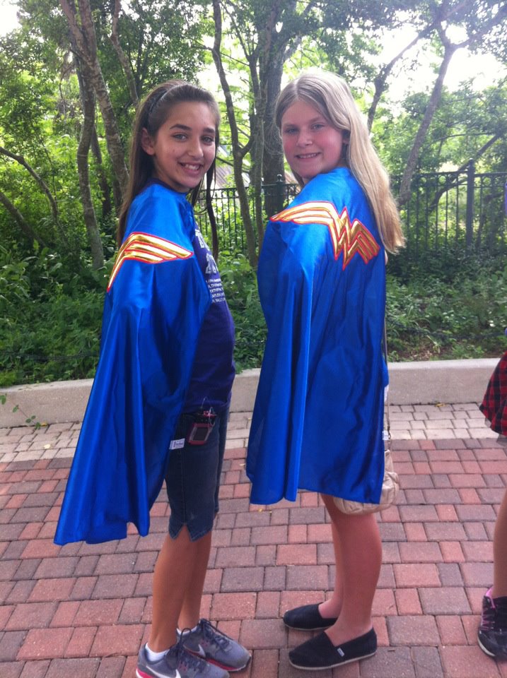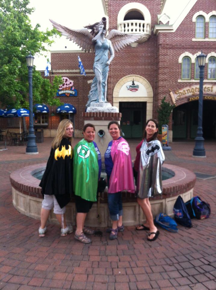 I loved the cape idea and didn’t feel the least bit silly wearing it while I was with the other super moms. However I had to run back to give something to Sweetstuff – alone – walking as an adult wearing a supergirl cape I got some interesting looks.