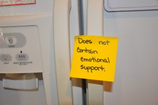 I admit it I am an emotional eater. When I am sad, angry, happy, excited, nervous, stressed, tired, etc. I turn to food. Sometimes the food is healthy like an apple or yogurt but more often it is not so healthy – peanut butter cups (yes I do keep them in the fridge – better cold), pudding and salsa and chips. I raid the pantry too but the fridge picture made more sense – otherwise it would just be a picture of cabinet doors and thus not be as effective.