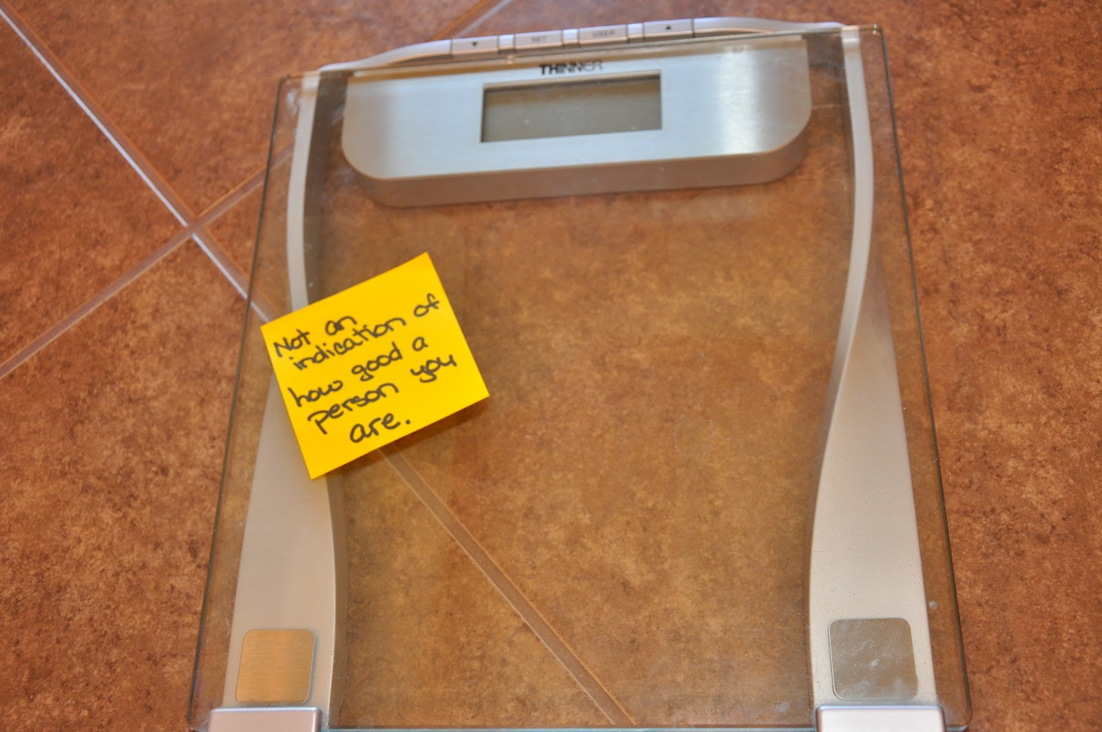 Regardless if it is me that steps on the scale or others – the numbers displayed are not an indication of how good or bad a person is. (The writing is small but it says “Not an indication of how good a person you are”)