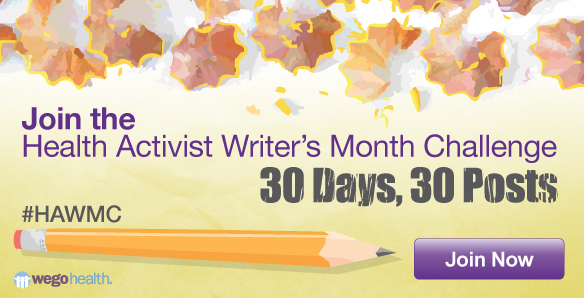Thankfully WEGO Health is about to begin the yearly Health Activist Writers Month Challenge (HAWMC). It begins April 1st and you can joy the fun by clicking HERE.