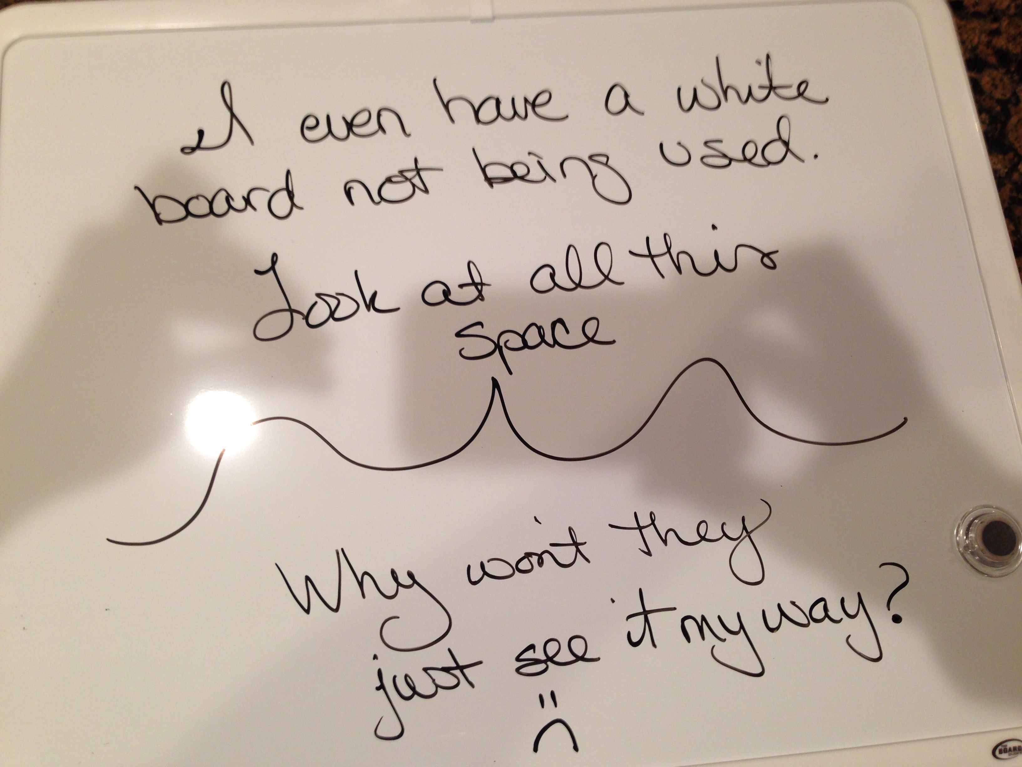 Meri of Our Diabetic Life has a white board. Meri was recently quoted regarding one of her reasons behind her white board on the new Disney T1 Everyday Magic site “With three boys diagnosed with diabetes, I find it’s hard to keep track of blood sugar trends. To remedy this, I’ve hung a whiteboard in the hallway. We write all the nighttime numbers on the board for several days and then analyze the numbers on the weekend. Writing the number down helps us take ownership of the number. And erasing it when we’re done is completely therapeutic!” If you are a parent of a child with diabetes and you haven’t already checked out the Disney T1 Everyday Magic site maybe bookmark it and when you are done thoroughly reading my posts and leaving meaningful thought-provoking comments you should check it out.