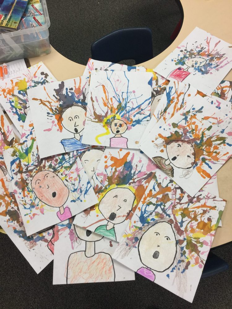 I did have a fun afternoon with my kinder class yesterday creating a kinder version of Edvard Munch’s The Scream. We had spent the week learning about the systems of the human body, sans reproductive system because they are kinders. Their favorite topic to discuss each day as we reviewed what we had learned the day before, was the brain and how basically the brain does all the heavy lifting including sorting out how information that comes into the body is processed and how the brain controls, and is affected by emotions.